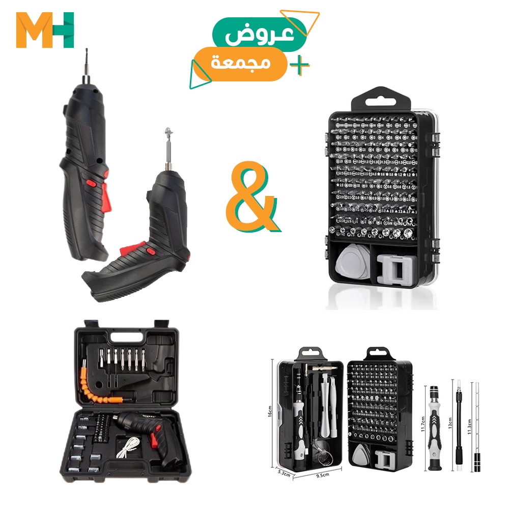 (مفك كهربائي لاسلكي + علبة مفكات صغيرة الحجم)