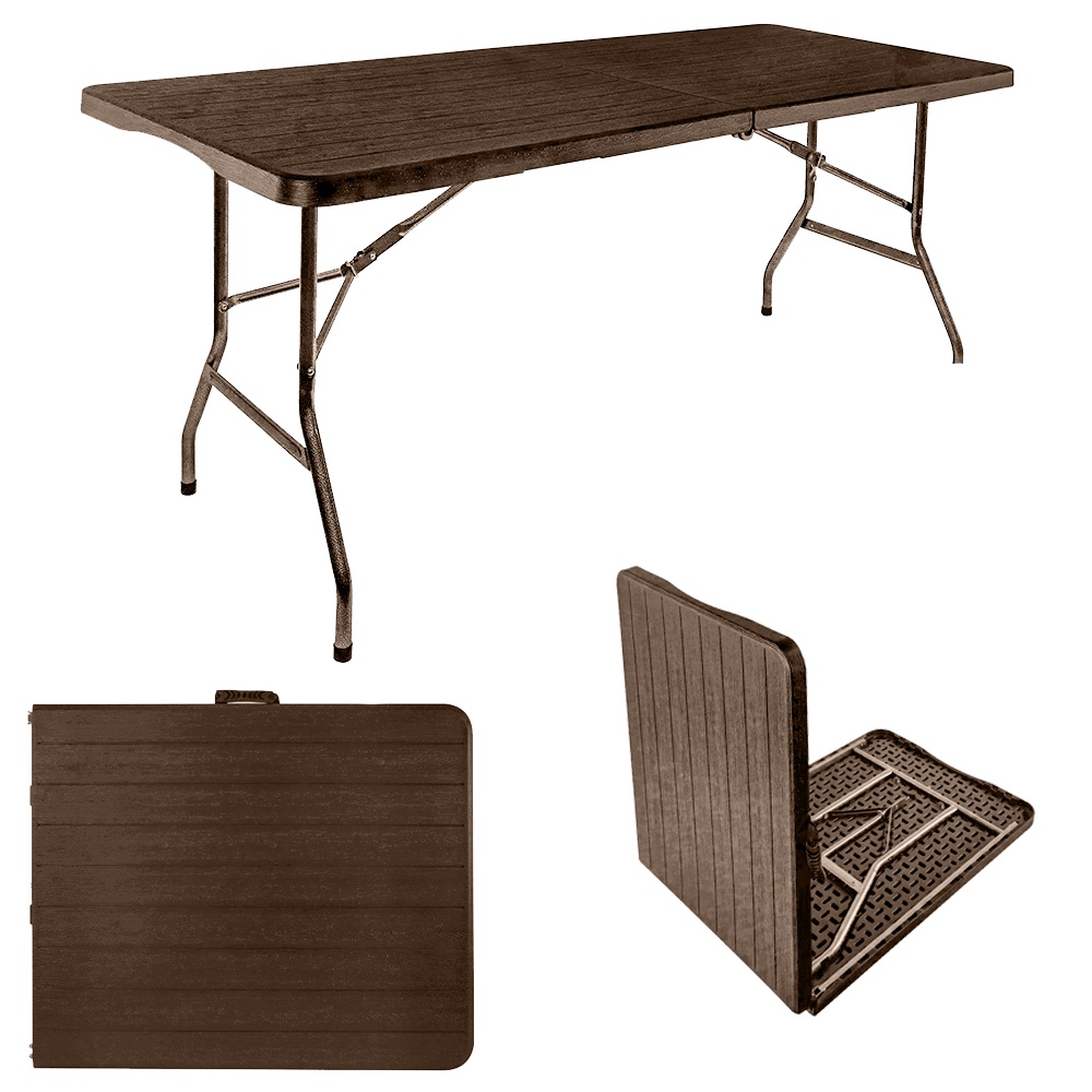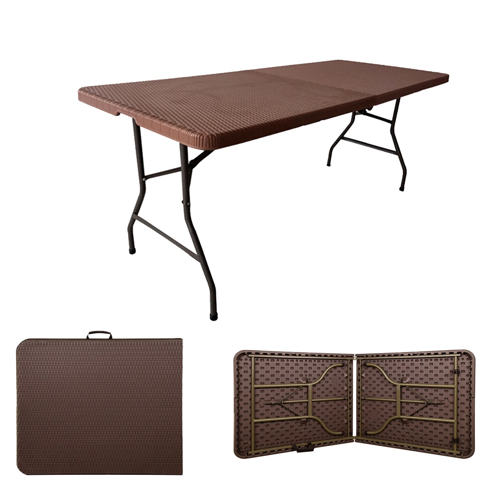 طاولة قابلة للطي متعددة الاستخدامات – 180 سم لون بني ستايل راتان او ستايل خشبي - من ال HDPE عالي الجودة