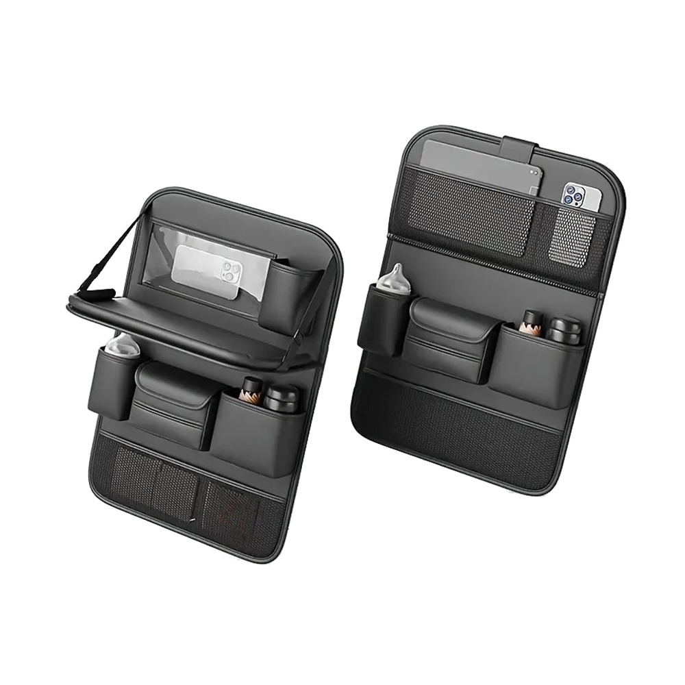 منظم ظهر كرسي السيارة مع الطاولة القابلة للطي هو الحل المثالي لتنظيم المساحة داخل العربية خصوصًا في الرحلات والسفر. المنتج بيتركب بسهولة في ظهر الكرسي الأمامي وبيوفرلك مساحة عملية تحط فيها الأكل أو الموبايل أو التابلت بكل راحة. الطاولة القابلة للفتح مناسبة جدًا للأطفال أو الكبار علشان يقدروا يستخدموها للأكل أو مشاهدة الأفلام أثناء الطريق.