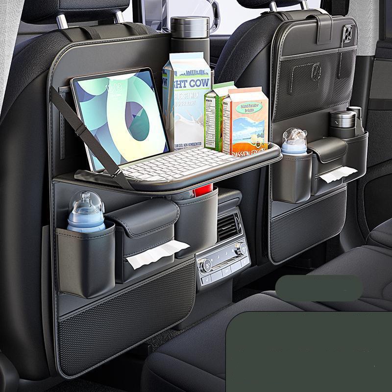 منظم ظهر كرسي السيارة متعدد الاستخدامات مع طاولة قابلة للطي وحامل أكواب ومكان للمناديل لتخزين أغراض السفر