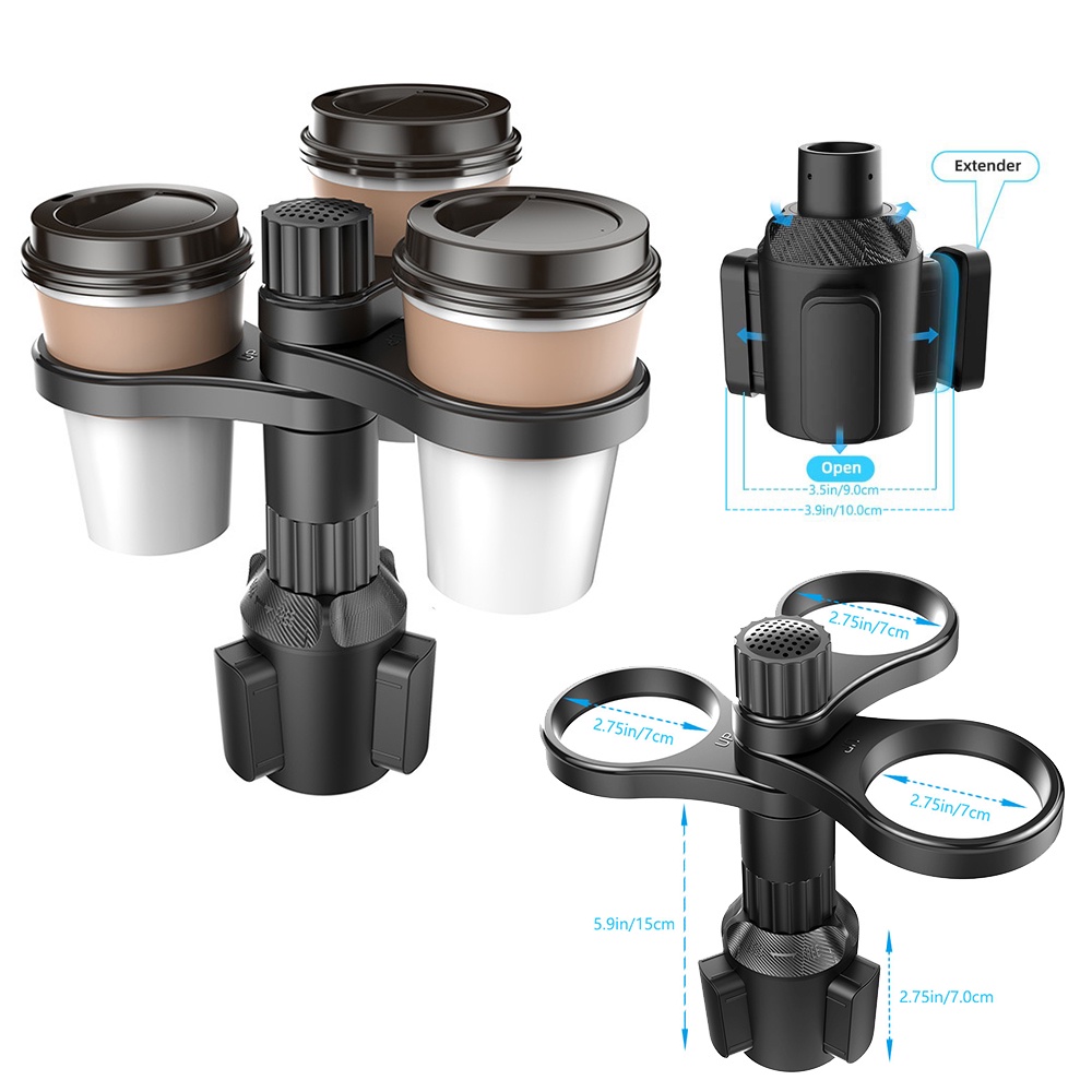 يأتي الموسع بقاعدة قابلة للتعديل بحيث يمكن ضبطها لتناسب معظم أنواع السيارات المختلفة. كما أن التصميم الدوار يسمح بترتيب الأكواب بشكل مريح دون أن تعيق حركة السائق أو الركاب. المنتج مناسب للاستخدام اليومي أو أثناء السفر والرحلات الطويلة.