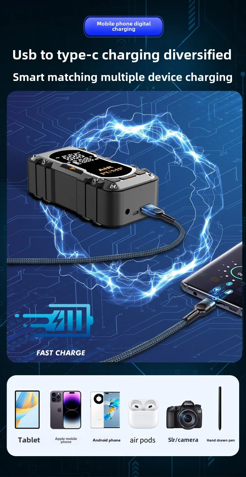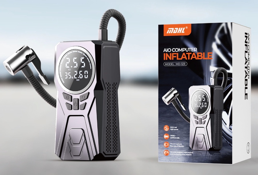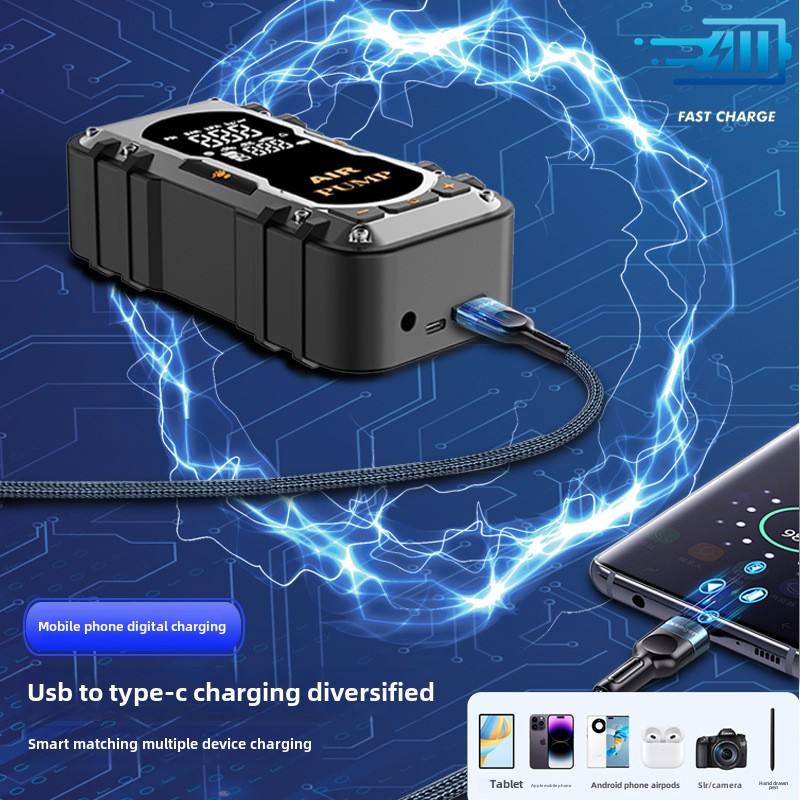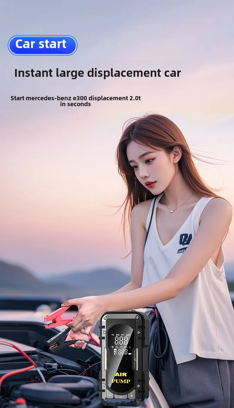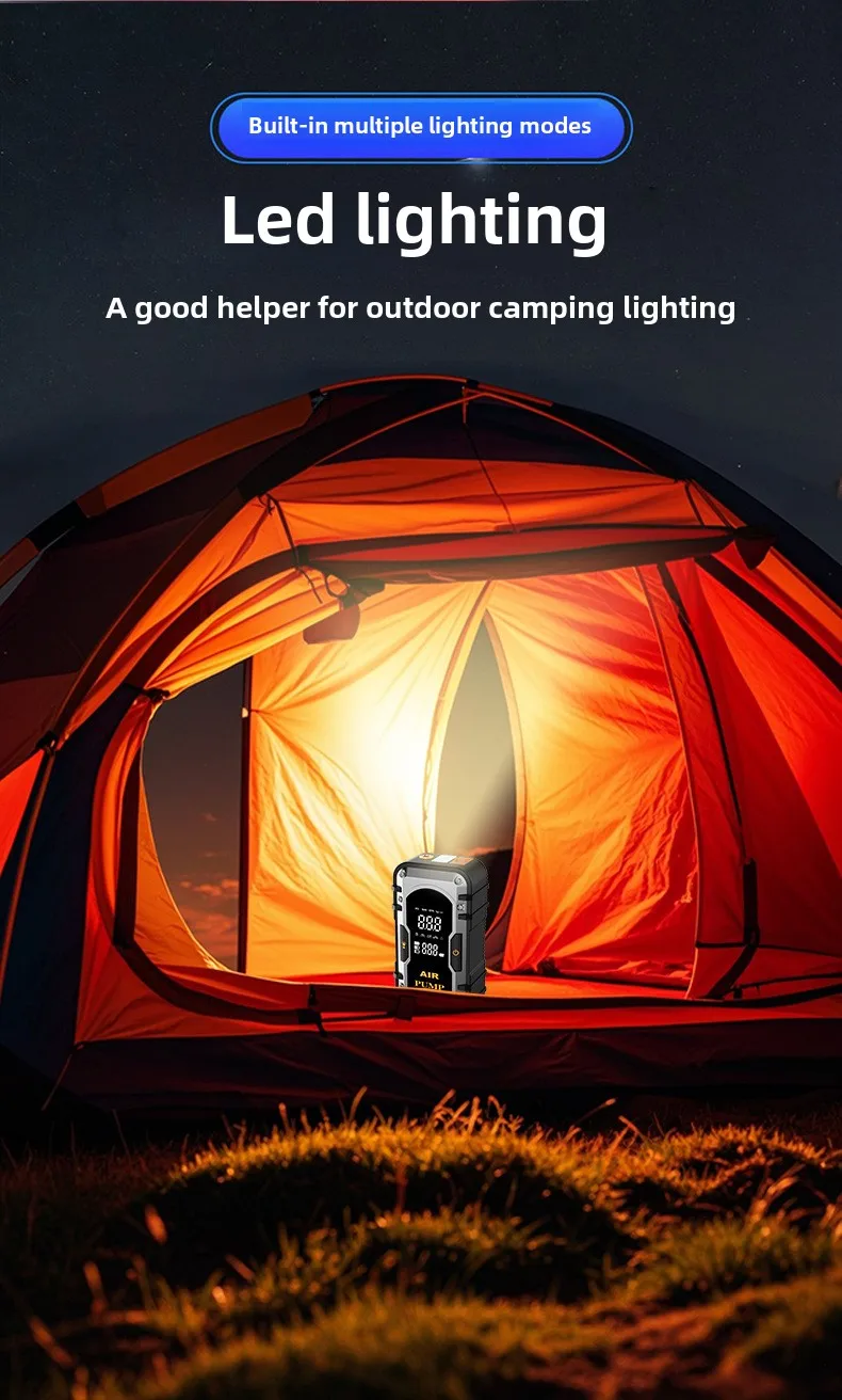 ج.ماحصل على حل متكامل للطوارئ في سيارتك مع جهاز 2 في 1 يجمع بين منفاخ الهواء القوي وجهاز تشغيل البطارية (Jump Starter). تصميم عملي ومحمول يناسب الاستخدام اليومي والطوارئ، سواء كنت على الطريق أو في البيت.