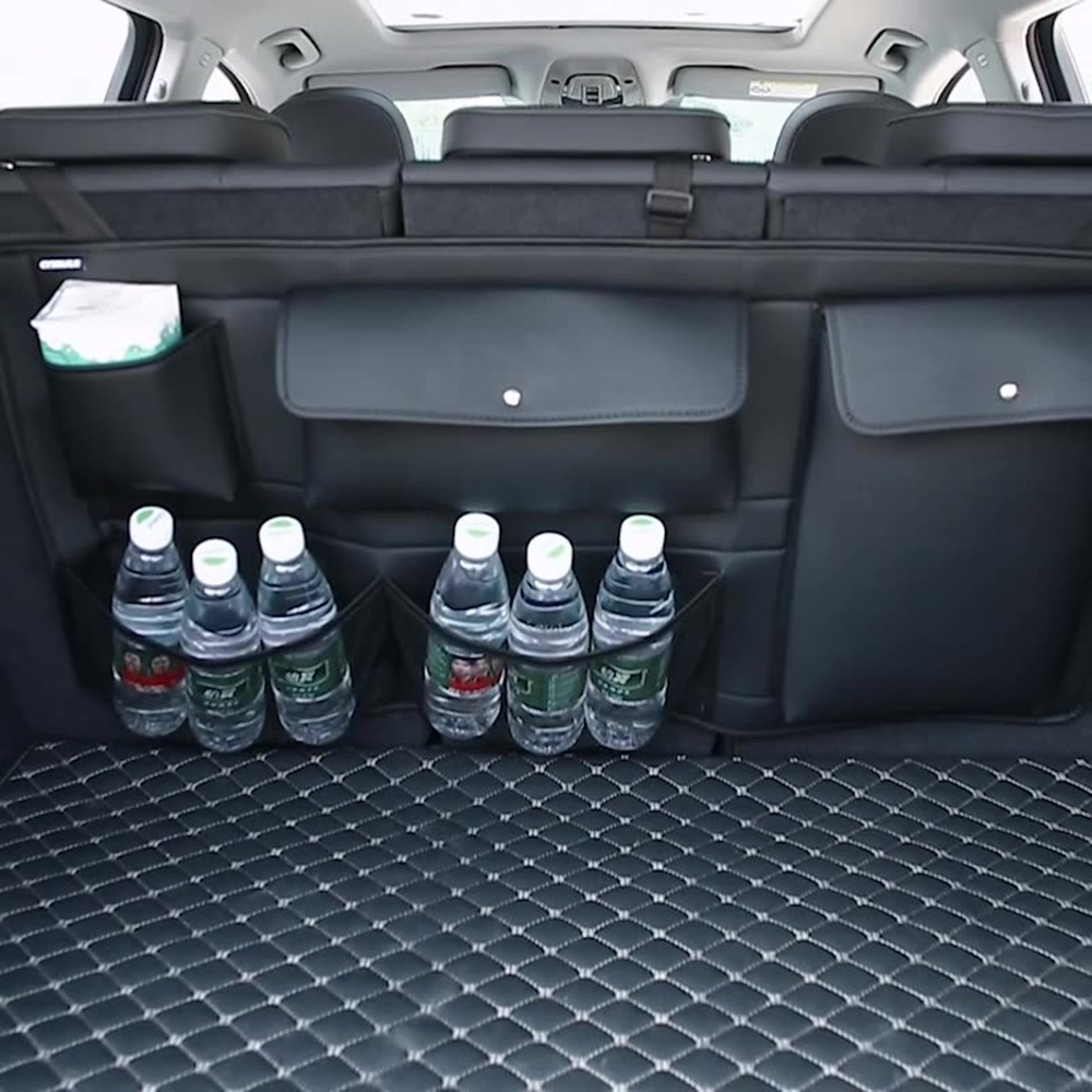 منظم شنطة السيارة يركب على ضهر الكنبة الخلفية مع جيوب متعددة لتخزين الزجاجات والمناديل وأغراض السفر وأغراض السيارة