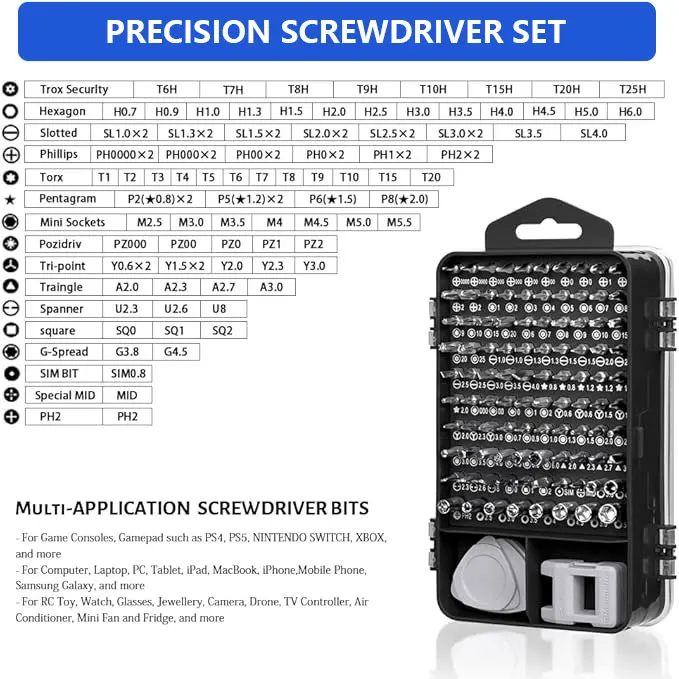 ج.معلبة مفكات مدمجة بتصميم ذكي وسهل الحمل، تحتوي على تشكيلة متنوعة من الرؤوس لتناسب جميع احتياجاتك في التصليح، الفك، والتركيب. مثالية للاستخدام المنزلي، الأعمال اليدوية، وتصليحات الأجهزة الإلكترونية الصغيرة.