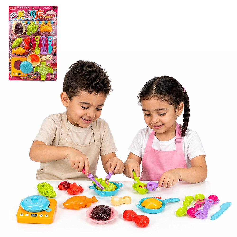 اللعبة بتخلي الطفل يبتكر مواقف وقصص (مطعم – شيف – ضيوف)، وده بيقوي الخيال والتفكير الإبداعي.