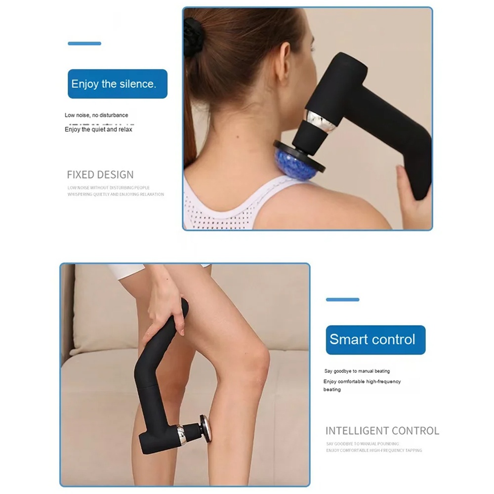 ✅✅✅ مسدس تدليك متعدد الرؤوس قابل لإعادة الشحن بدون سلك, بيد طويلة لسهولة الاستخدام
