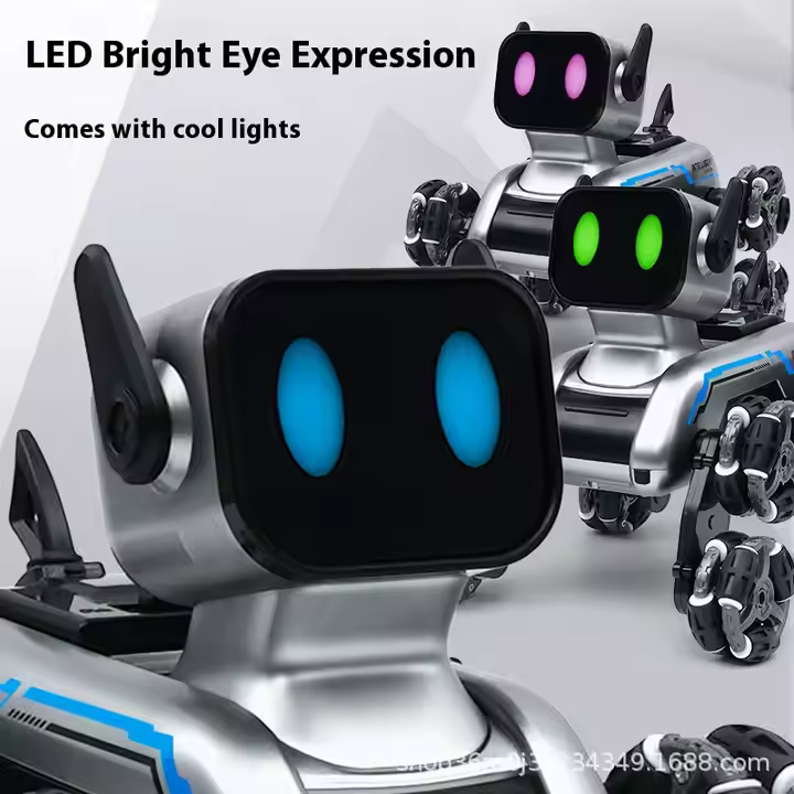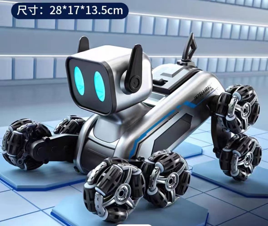 كلب روبوتي مميز مزود بـ 8 عجلات قوية لضمان ثبات الحركة وسلاستها على مختلف الأسطح. يتحكم فيه الطفل بسهولة عبر جهاز تحكم عن بُعد تقليدي أو من خلال ساعة استشعار ذكية تُلبس في المعصم، ليقوم بحركات بهلوانية واستعراضية تبهر الأطفال.