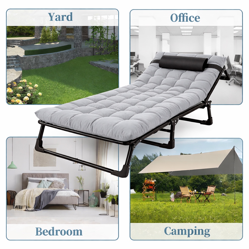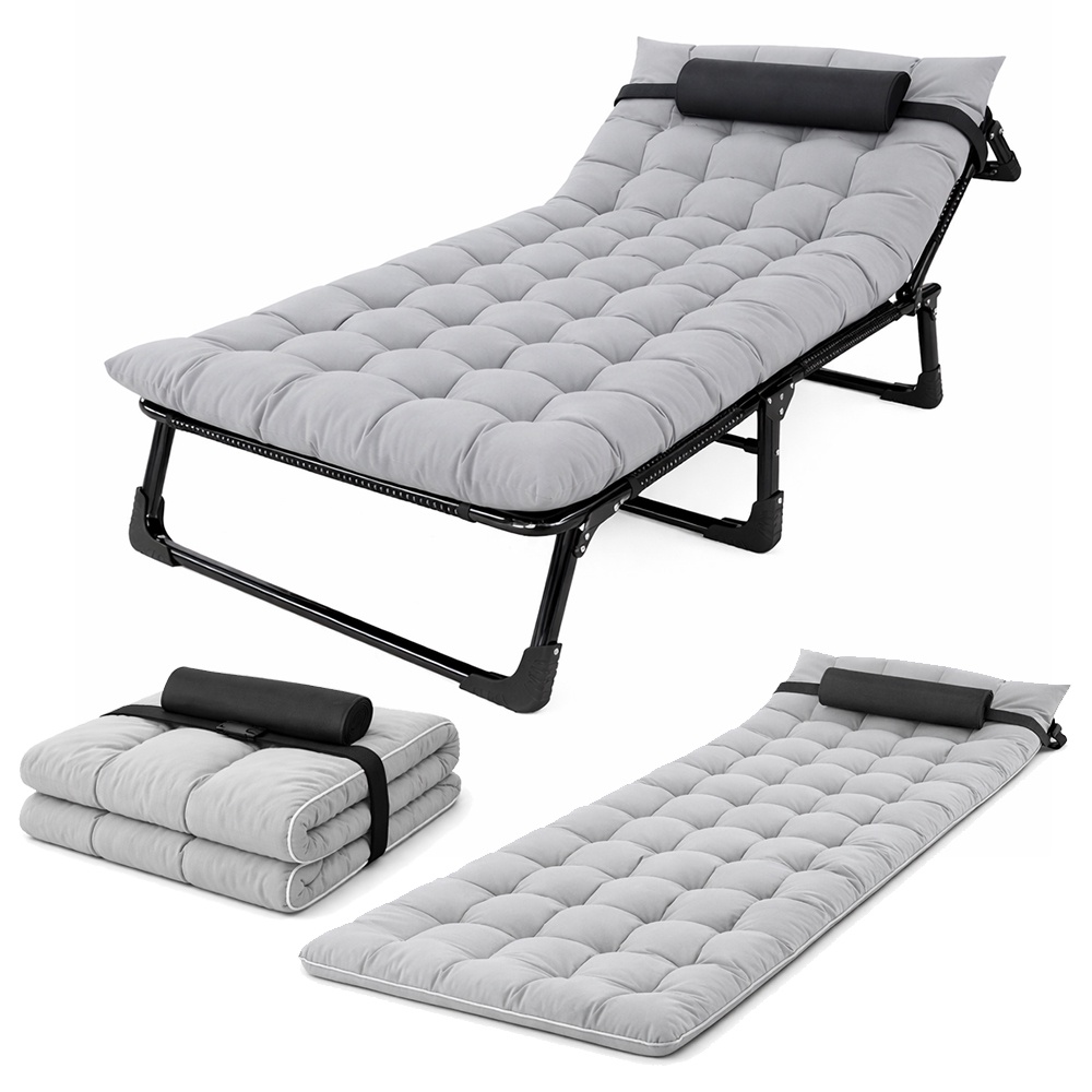 استمتع بلحظات من الراحة والاستجمام أينما كنت مع شازلونج الاسترخاء المحمول يصلك بمرتبة لون رمادي المصمم ليوفر أقصى درجات الراحة والدعم. سواء كنت في الحديقة، على الشرفة، في الشاليه، أو أثناء رحلات التخييم، هذا الكرسي هو خيارك الذكي للاسترخاء في أي وقت.