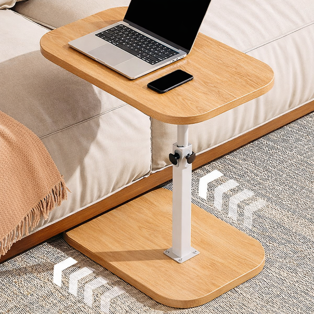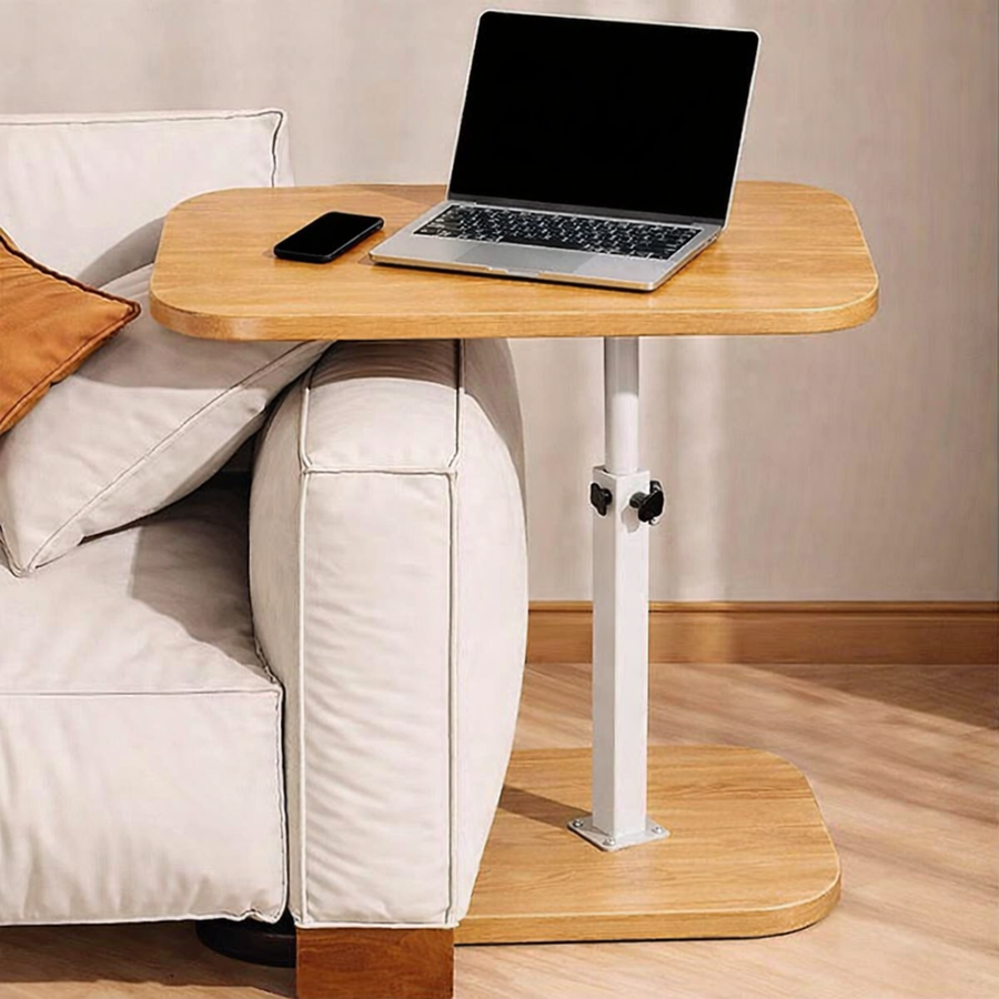 طاولة اللاب توب بتصميم عصري باللون الابيض ستايل خشبي لتضيف لمسة انيقة للتصميم لمختلف الاستخدامات، مع إمكانية الفك والتركيب وتخزينها بسهولة بعد الانتهاء.