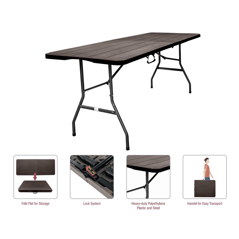 طاولة قابلة للطي متعددة الاستخدامات – 180 سم لون اسود ستايل خشبي - من ال HDPE عالي الجودة