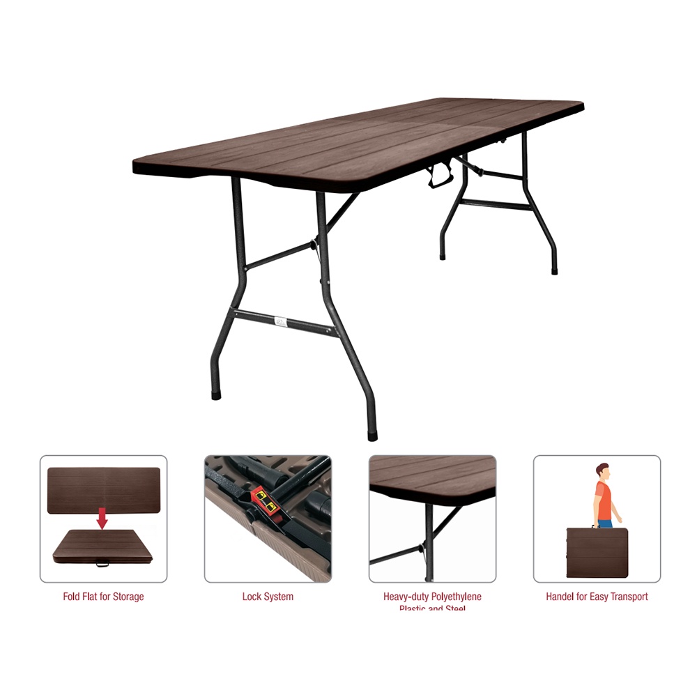 طاولة قابلة للطي متعددة الاستخدامات – 180 سم لون بني ستايل خشبي - من ال HDPE عالي الجودة