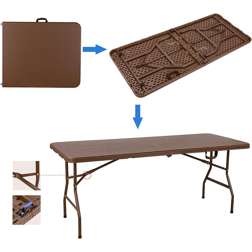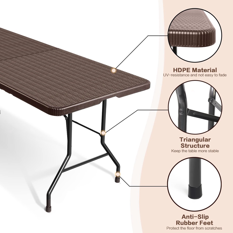 طاولة قابلة للطي متعددة الاستخدامات – 180 سم لون بني ستايل راتان - من ال HDPE عالي الجودة